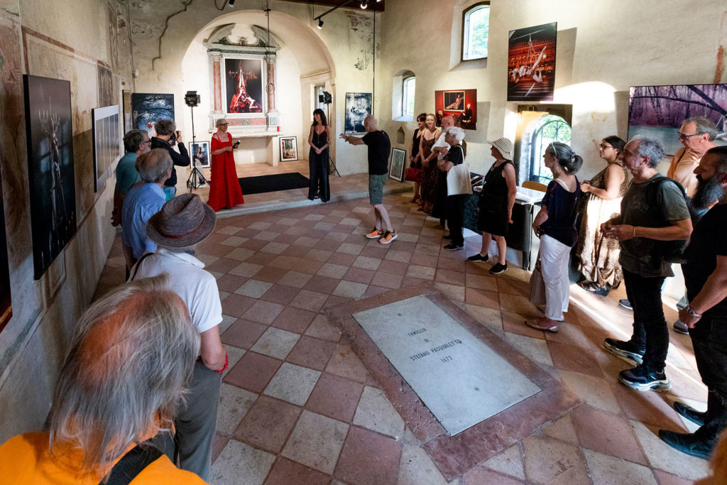 Il percorso espositivo, infatti, segue la logica di un itinerario, quasi un percorso iniziatico. Chi entra nell’’Oratorio di Santa Maria Assunta, si pone già in attesa, pronto ad intraprendere un cammino marcato dalle foto. Appena varcata la soglia dell’oratorio siamo accolti dalle immagini ambientate a Villa Presina, posizionate difronte a noi. Il nostro occhio viene rapito la nudità di quei corpi in contrasto con l’imperfezione del muro scrostato. La luce regna sovrana, sottolineando impietosa le crepe dell’intonaco, che fa da sfondo a due giovani donne. La loro posa plastica richiama una scena teatrale. Richiama un tableau vivant e sorprende lo spettatore con corpi che diventano immagine. Perché non si tratta solo di mere immagini di donne esposte, ma attrici su una scena, impegnate a rappresentare un’idea di bellezza formale.