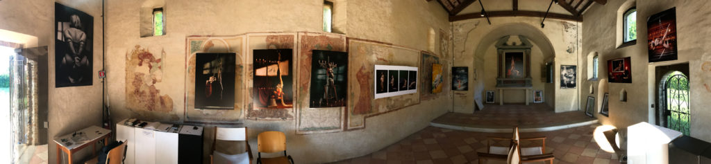 Infine, protetta dall’abbraccio dell’abside una foto spettacolare per intensità dei soggetti e per la forza che emana, un tributo ai grandi artisti del 500. Omnia vincit amor richiama non a caso le antiche pale di altare. Ma per i corpi statuari, il pathos e l’uso sapiente del chiaroscuro non può non sintetizzare la drammaticità delle crocifissioni di Caravaggio.