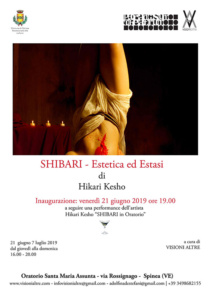 Sabato 22 giugno, alle ore 19 presso l’Oratorio di Santa Maria Assunta SPINEA (VE), a cura di Visioni Altre, si inaugura la mostra dell’artsita Hikari Kesho “Shibari in oratorio”.